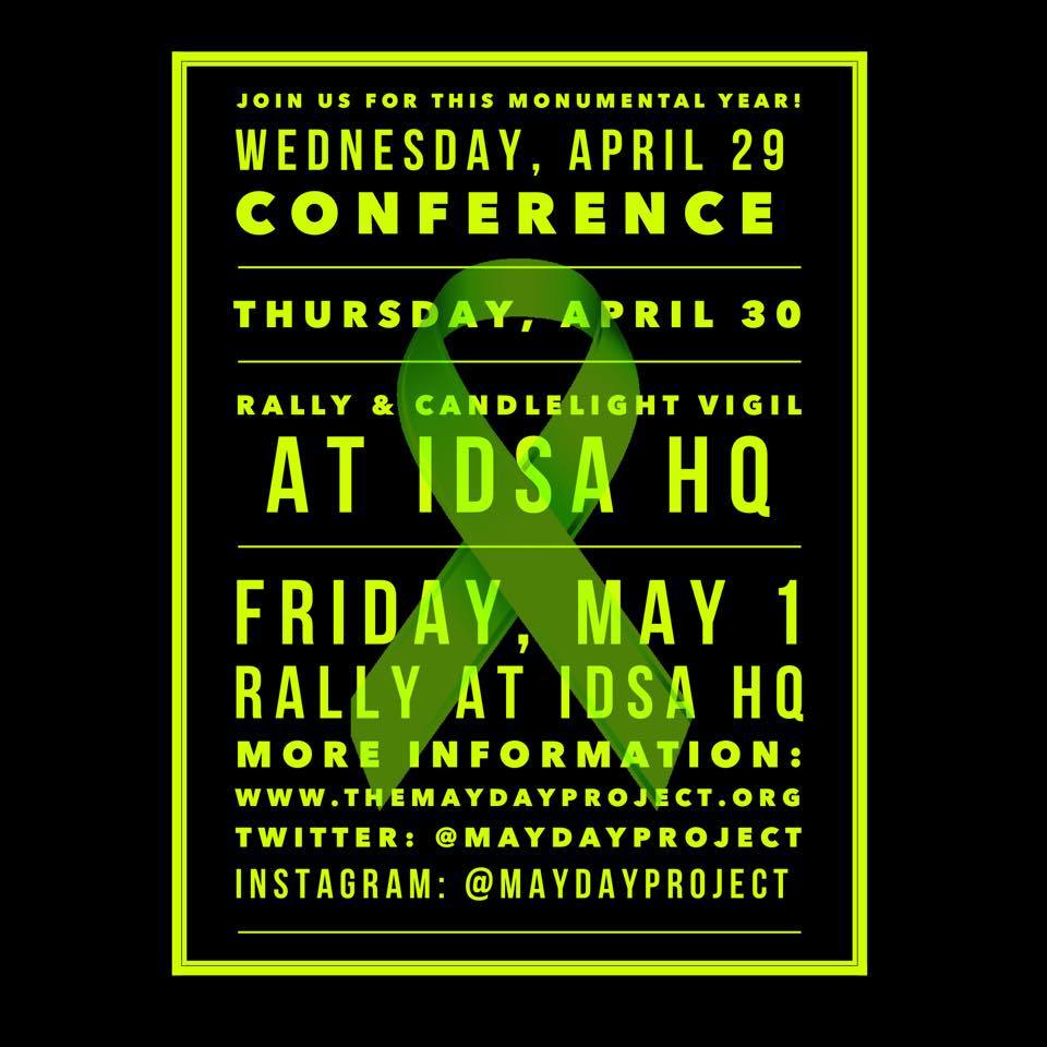 Grace goes on to tell us, from her posting on the Mayday Project Facebook page, “We want to know WHEN the IDSA is going to sit down with us? Where? And who from our group will attend to make sure the meeting is serious and that change is made in writing? The IDSA is hoping that we will all declare this a victory and go away. We wont! We are stronger and wiser than that.”